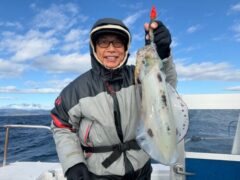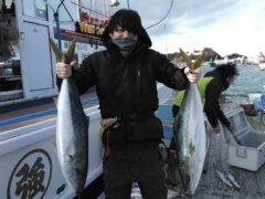 船外機ボートでオオモンハタ、ツバスをゲット。
