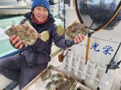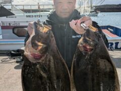 泳がせ釣果 ヒラメ 38〜56㎝ 4枚 スミイカ、マゴチ、ワニゴチ、クロソイ、カ…