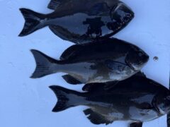 口太グレの 43センチを 1匹 尾長グレの 38.5センチを 1匹。