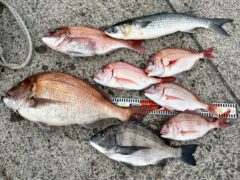 レンタルボート釣果 マダイ43㎝頭に3枚