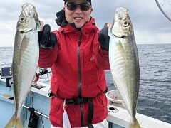 午前便釣果 潮が流れ出す時からポツポツとあたり大アジが釣れました