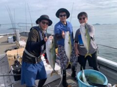 レンタルボート釣果 ワラサ 78cm タイ 54cm頭に3匹 オジサン オオモン…