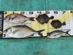 カセ釣果 シマアジ47センチ含め2匹 タイ カワハギ