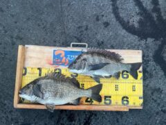 磯釣果 口太グレ38㎝を頭に2匹 真鯛