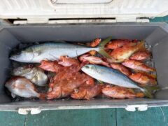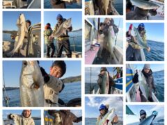 ジギング船の釣果 ケンカブリ・ワラサ・マダイ・シーバス・ガシラ