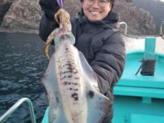 レンタルボート釣果 ヤエンでアオリイカ胴長28cm頭に3杯、コウイカ1杯。