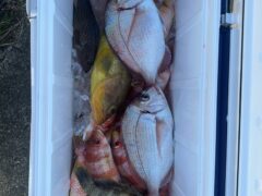 タイラバ釣果 マダイ50cm、シロアマダイ47cm、シオ48cm、イトヨリ4匹、…