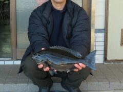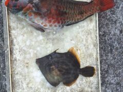 船外機ボートでカワハギ、カサゴをゲット。