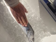 手漕ぎボートでアジ、カマス、イワシをゲット。