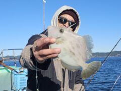 カワハギ乗り合いで出船。 カワハギ4枚~10枚。 アカハタが船中7匹。