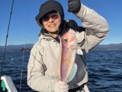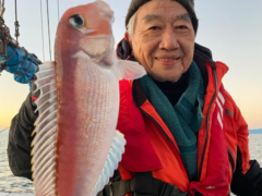 船五目釣果 マダイ2匹、アマダイ1匹、アオリイカ1杯、オオモンハタ2匹、カサゴ1…