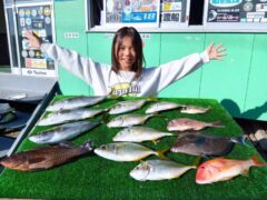 レンタルボート釣果 シマアジ、ツバス、マダイ、オオモンハタ、サンノジ