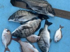 レンタルボート釣果 真鯛4枚 ヘダイ