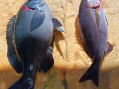 船外機ボートでグレ、タカノハ、カサゴをゲット。