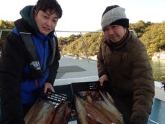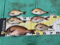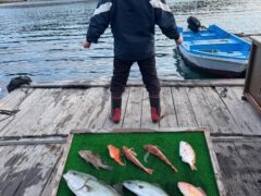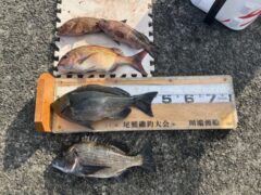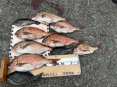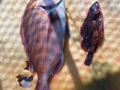 船外機ボートでイシダイ、マダイ、ワラサをゲット。