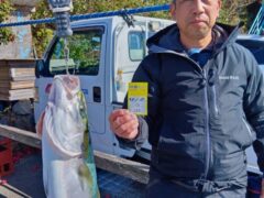 青木さんがチヌ57㎝をゲット エサ:オキアミ