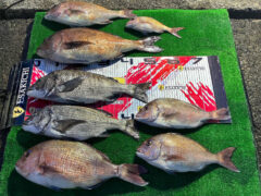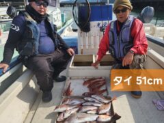 レンタルボート釣果 マダイ、タカノハ、カワハギ、オオモンハタ