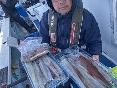 スルメイカから始まりヤリイカ、アカイカも釣れ出してスルメイカが連発で釣れる時間帯
