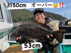 近藤さん! 53、49cmと2枚ゲット! エサはオキアミ