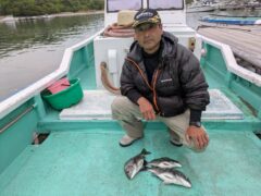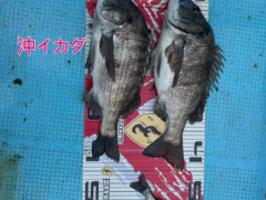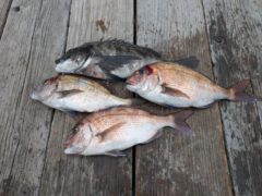 船外機ボートでマダイ、キビレ、チヌをゲット。