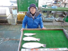 泳がせ釣果 ヒラメ 37〜75㎝ 0〜3枚 計22枚 キジハタ 30〜54㎝ 0…