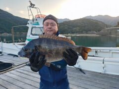 下川さん チヌ 47㌢ 餌 オキアミ