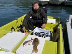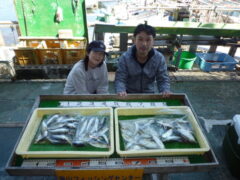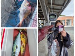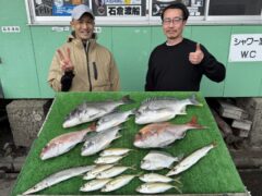 船外機ボートでマダイ、キビレ、アジ、カマスをゲット。