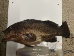 磯エギング、ルアー釣果 オオモンハタ52センチ アオリイカ胴長25センチ