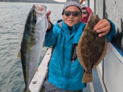 泳がせ釣果 いい人ヒラメ3枚、鰤も釣れたけど残念賞の方もおりました。