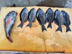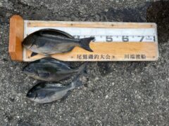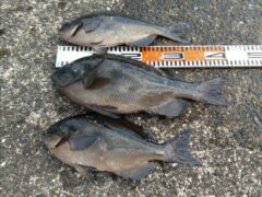 磯釣果 尾長グレの 30〜41.8センチを3匹。
