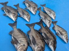 工藤様 筏釣り 餌:オキアミ、ボケ 34-48.5cmチヌ6枚