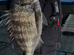 加藤様ご夫妻 チヌ44センチ チヌ43、5センチ頭に2枚 餌はサナギとオキアミ