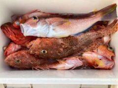 鬼乗り合い釣果 オニカサゴ、25センチ~46センチ アマダイ、1尾 ガシ、等