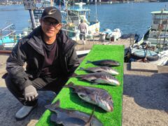 大橋様 筏釣り 餌:オキアミ、ボケ 37-46.5cmチヌ4枚