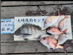 三木崎沖釣果 マダイ40から52センチ7匹、イサキ30から35センチ24匹、ハマ…