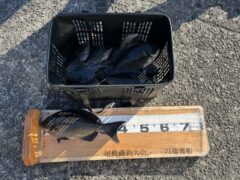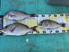 口太グレの 43センチを 1匹 尾長グレの 38.5センチを 1匹。