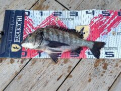 カセ釣果 タイ40センチ含め3匹 カワハギ