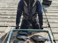 青木さんがチヌ57㎝をゲット エサ:オキアミ