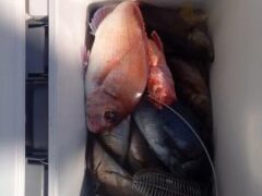 マダイの 40〜60センチを7匹 口太グレの 30〜38センチを3匹。