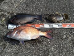 磯釣果 口太グレ41㎝にマダイ50㎝、カワハギ28㎝