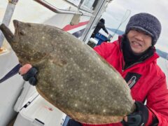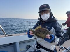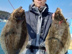 泳がせ釣果 まにアタリはありお客さん2名の方が3枚2枚の計5枚の釣果でした。