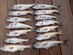 ヒラメ、45センチ~65センチ、0~2尾 スズキ、1尾、等