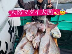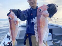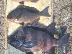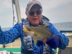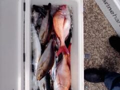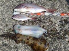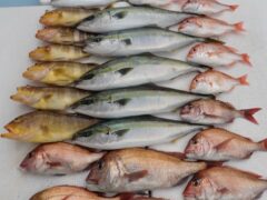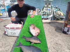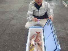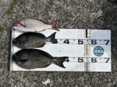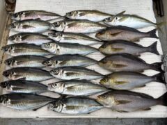 午前便釣果 マアジ 20〜35㎝ 10〜30匹 チダイ、マダイ、フグ
