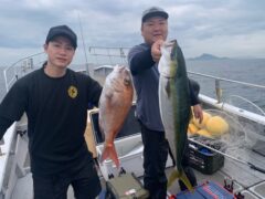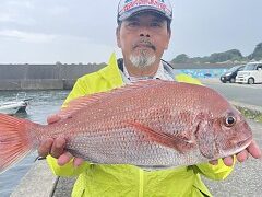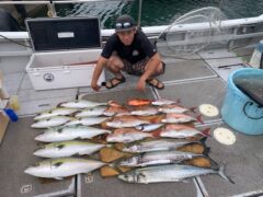 船外機ボートで加藤さんがマダイ50cmまでと、メイチ、ソウダカツオをゲット。