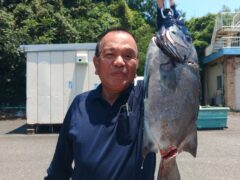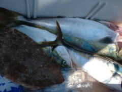 ヒラメ65㌢頭に4枚 小ぶり頭に大ハマチ7本 ベイトに混ざり大アジも顔見せた
