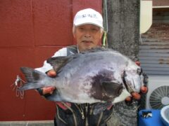船外機ボートで北川さんがマダイ74cmまでゲット。