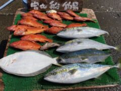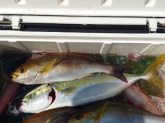 ハマチ 40~65㎝ 0~4匹 船中8匹 シオ 40㎝ その他 カサゴ、小ア…