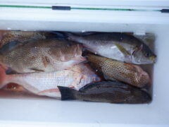 二木島沖釣果 マダイ45~~2匹8匹 オオモンハタ35~45㎝0~4匹10匹 イ…