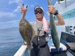 ワラサ6ヒット、4キャッチ、ヒラメがI枚 スーパーライトで、赤ハタ祭り