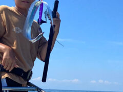 船外機ボートでみっつさんとがもうさんがアジをゲット。